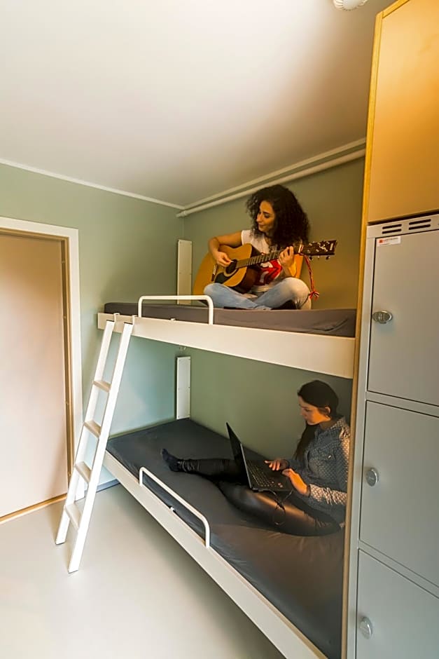 A private twin room with bunk bed, pillows, duvets, desk, wardrobe, seating area and locker. Bathroom and private toilet facilities are available in the room.