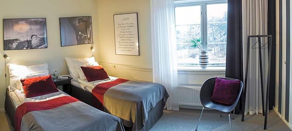 Stayed overnight travelling from Norway to Sweden and the location was convenient as just 10 mins from E6. Driving up to the hotel provides great views of the fortress. Nice outdoor areas to enjoy the sunset. The room was spacious and modern. Free parking.