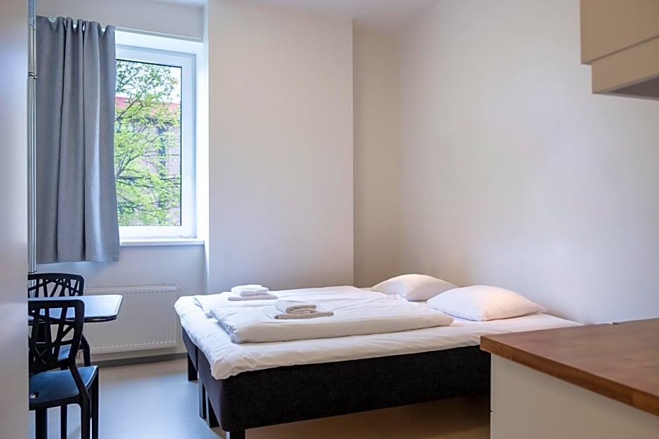 The Anker Apartments exceeded my expectations. I was pleasantly surprised that it was so clean, quiet and comfortable after reading some less than positive reviews. Maybe the shared hostel rooms with multiple beds are not as nice, but my "budget double room" was perfectly acceptable. It was no frills (other than the heated bathroom floor 👍) so no maid or room service, mini bar or anything like that, but a fully equipped kitchenette (glad I brought my moka pot to make coffee), clean sheets and towels, excellent shower, good climate control, and a grocery store downstairs. And as I said VERY clean and quiet, and painted a restful shade, not all white like the rather institutional hallways. Checkin and out was very easy, and the two staff I spoke to were very kind and helpful. For the price of one night in a fancy hotel in the center I had five nights of rest and a space to get some work done or have a light meal when not out exploring the city or attending my conference. Also, the Grünerløkka neighborhood is very nice, sort of hipster with many cafes, parks, shops and bars, and public transportation from the hostel to any point in the city was easy to navigate. As I said, all expectations were exceeded!