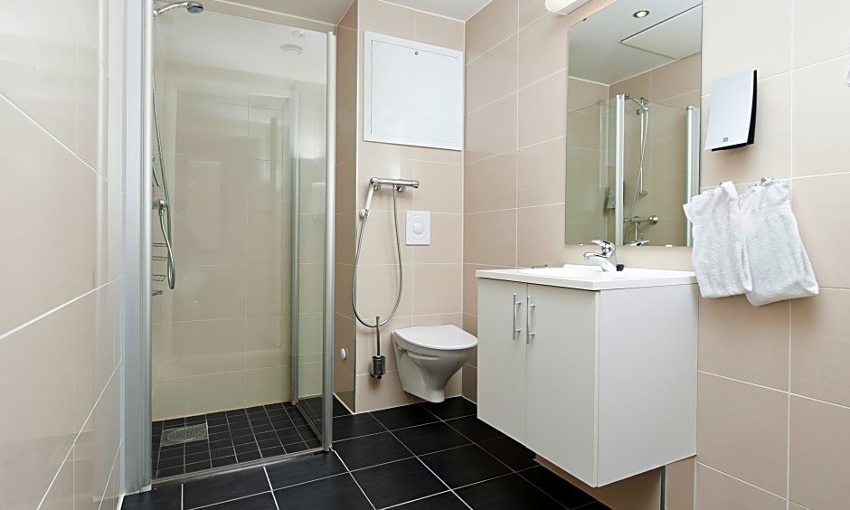 They fulfilled my request for a quiet room. There was free and easy parking. We were able to walk to the train station to take the train into Stavanger. Everything was clean. Breakfast was good. My bed was okay though a little creaky. I used my own thin pillow, but my husband thought the pillows were fine. The shower had good pressure and a steady temperature. The staff were nice.