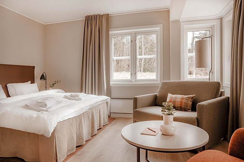 The Jegtvolden Fjordhotell offers a variety of room types including standard double rooms, family rooms, double rooms with a terrace, suites with sea views and balconies, double rooms with sea views, and double rooms with balconies. Smoking is not allowed in any of the rooms. Occupancy varies, with some rooms accommodating 2 adults and no children, while others can accommodate 4 adults and 2 children. The bed sizes typically include twin beds and double beds, with some rooms also offering sofa beds.
