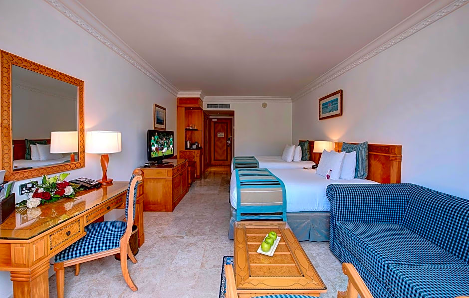 Water park and private beach area are complimentary, with beachfront access and an outdoor swimming pool (free). Free WiFi and private on-site parking keep stays easy. Fitness center is free, and the 24-hour front desk is ready to help. Soundproof rooms, a terrace, garden and balcony views, a private entrance, and live music/performances (free) add to the ambience. Darbat Restaurant offers International cuisine in a family-friendly setting, and a bar provides a casual spot for a drink.