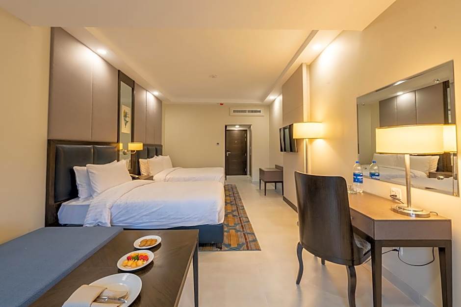 The twin room offers air conditioning, a mini-bar, a balcony with garden views as well as a private bathroom boasting a shower. The unit has 2 beds.