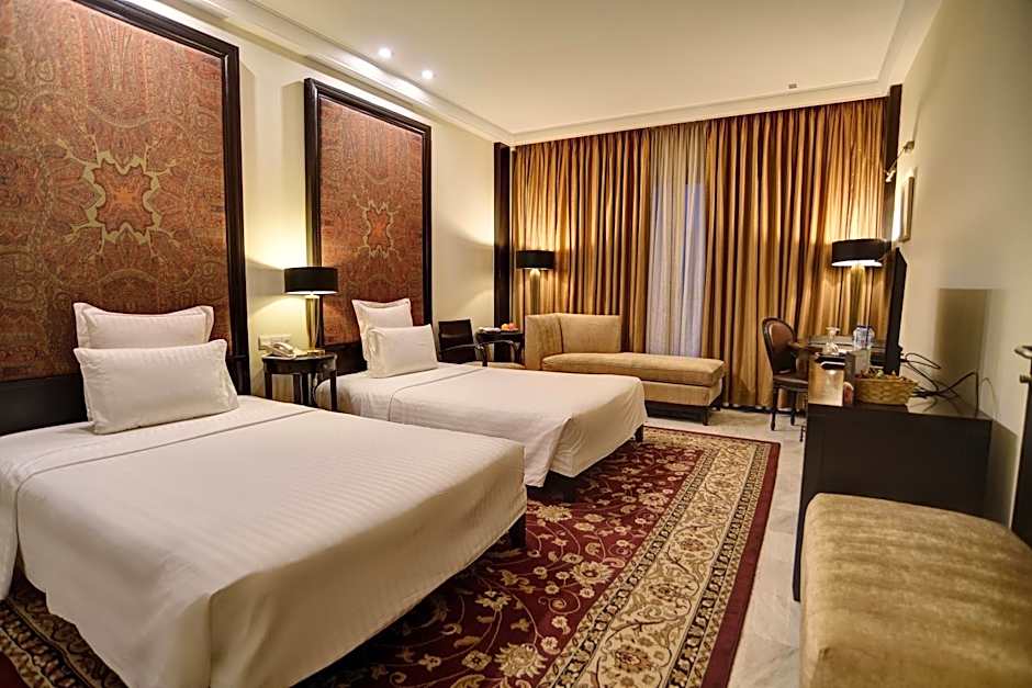 The Pearl Continental Hotel in Muzaffarabad offers a variety of rooms including Deluxe Twin, Executive Twin, Executive King, Deluxe King, Standard Twin, and Standard King rooms. All rooms are non-smoking and range in size from 409 sqft. They can accommodate either 2 adults or 2 adults and 1 child, with bed options including double, twin, and king-sized beds.