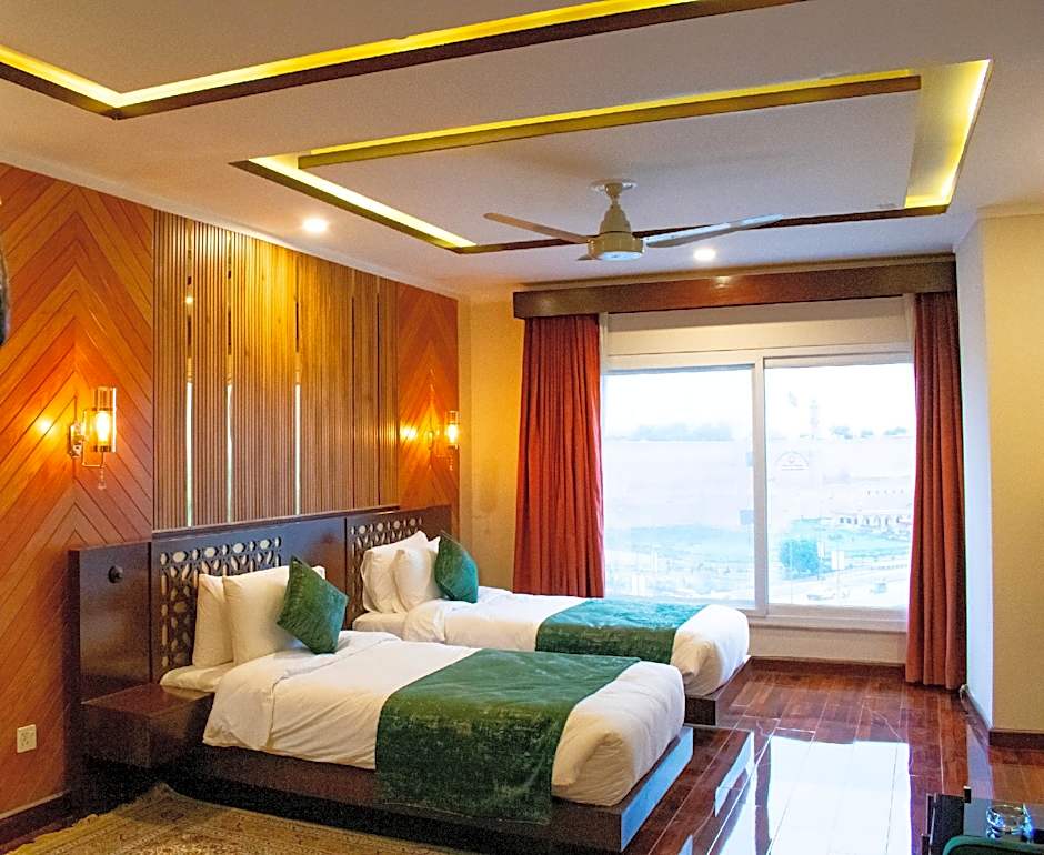 is a 3-star hotel in Peshawar, Pakistan, located about from the city center. A comfortable hub for travelers, it offers free wifi, free private parking, air conditioning, and a 24-hour front desk. The on-site restaurant, non-smoking rooms, elevator access to upper floors, bidet, bathtub, and a view add practical comforts with a touch of charm.
