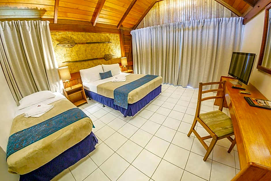 The accommodation options at the Kokopo Beach Bungalow Resort cater to travelers' diverse needs. The Executive Bungalow, for instance, offers a spacious sanctuary featuring 172 sqft of living space and a private terrace or balcony with garden views. With a queen-size bed and a twin bed, it comfortably accommodates two adults. The option for a non-smoking room ensures that guests can enjoy a fresh and inviting environment. Immerse yourself in comfort and serenity with the diverse range of room types available, designed to meet the needs of every traveler.