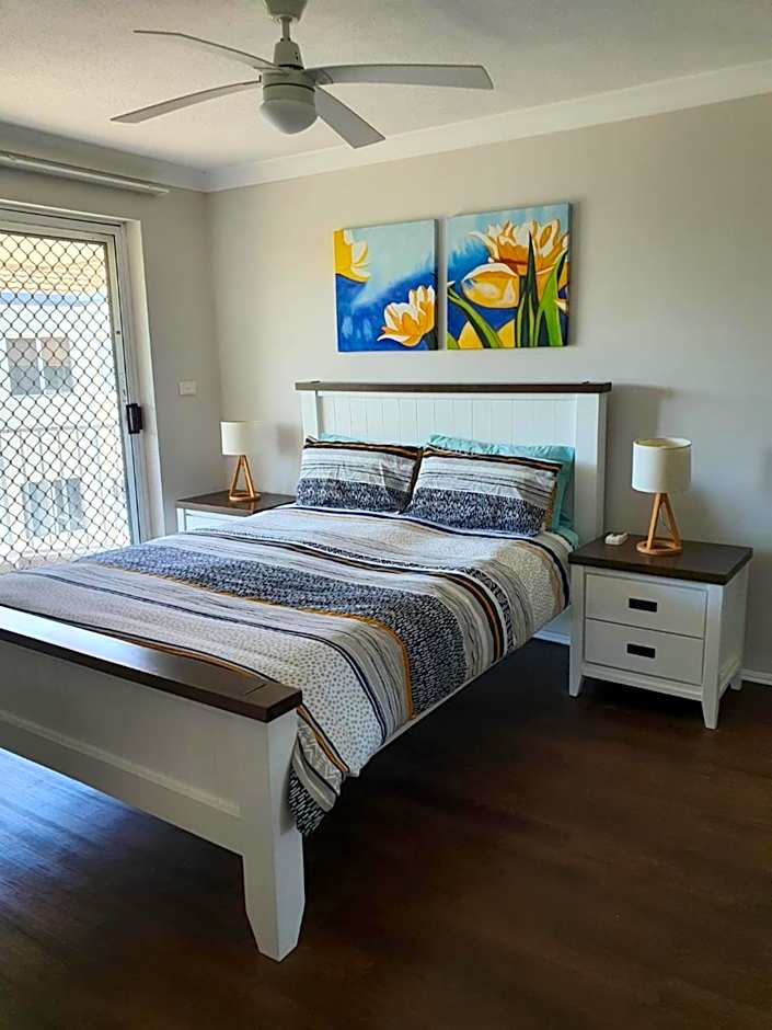 This family room is consisted of of a flat-screen TV with cable channels and a private bathroom. The unit has 2 beds.
