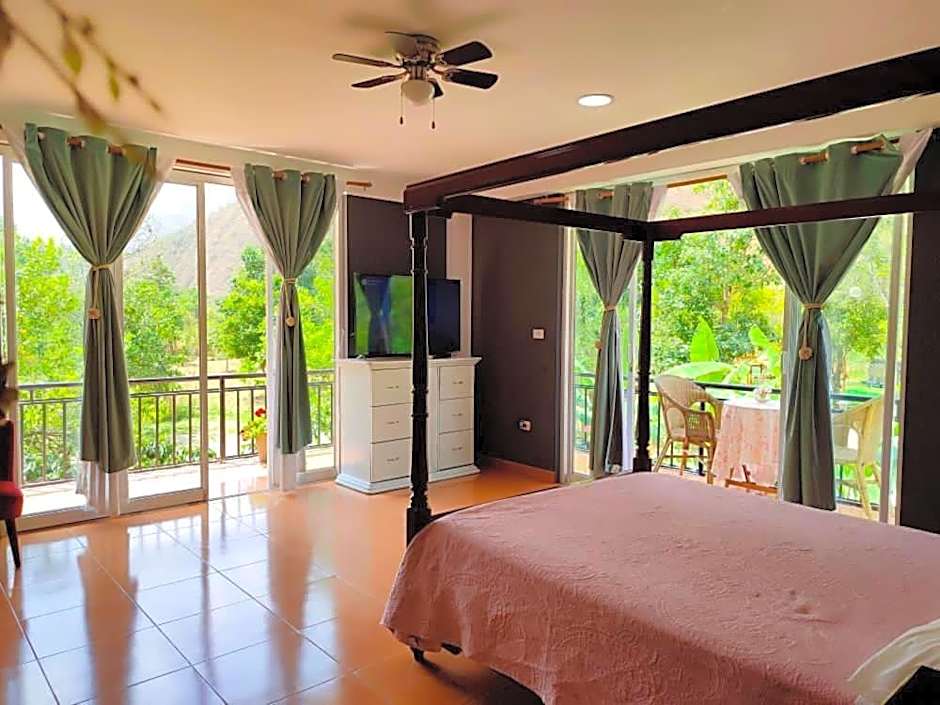 The family room provides a tiled floor, as well as a private bathroom featuring a walk-in shower. Guests can benefit from a balcony and garden views. The unit offers 2 beds.