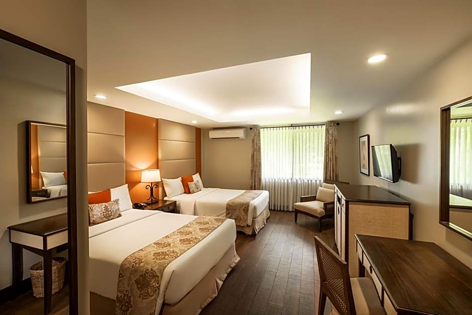 Two outdoor pools invite year-round fun, surrounded by open-air spaces that feel like a garden retreat. A sun deck, terrace, and patio provide relaxing moments with garden views and a sense of calm after a day of Cebu City exploring.