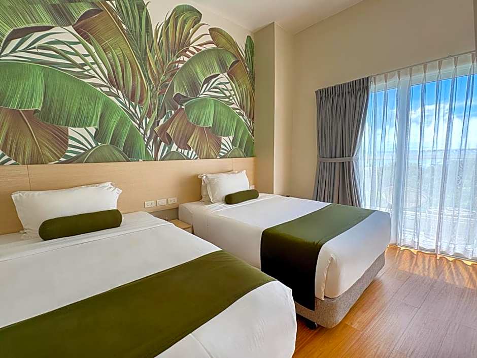 The hotel offers Deluxe Rooms, featuring both a Twin and Queen size bed, ideal for accommodating up to 3 adults and 1 child in a 323 sqft space. Smoking is not allowed in these rooms.