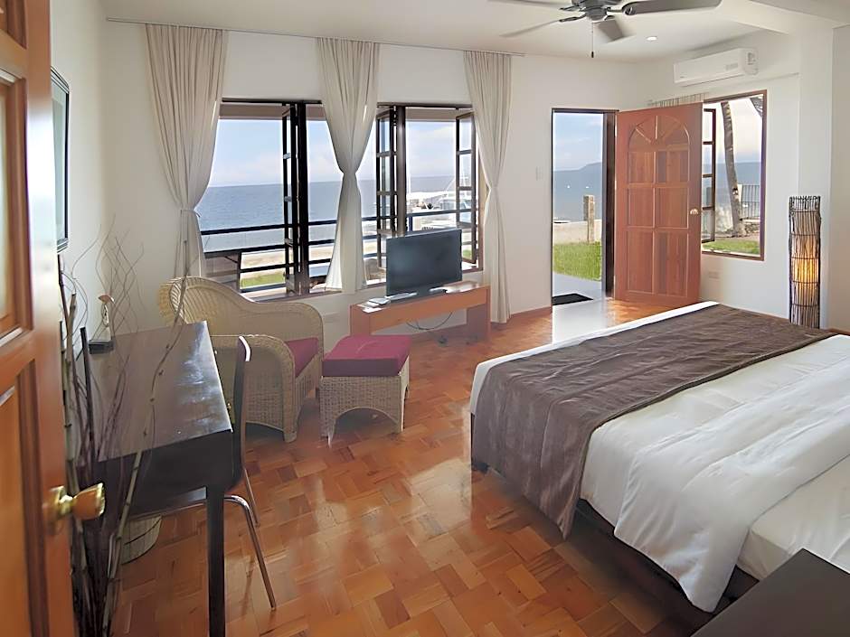 A beachfront setting greets travelers with the soothing rhythm of the waves, a beachfront outdoor swimming pool, and spots to unwind—like the on-site bar and a terrace that invites lingering as the sun goes down over the Dauin coast.