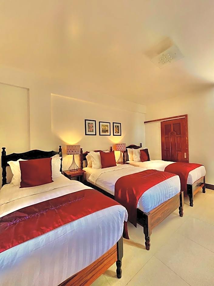 The hotel offers a variety of room types including Family, Double, Suite, Twin, Villa, and DormitoryRoom. The occupancy ranges from 1 adult and 1 child in the Oceanview Premiere Twin room to 9 adults and 1 child in the Mixed Dormitory Room. Bed sizes vary from Twin to Queen to King size, with multiple bed options available in the larger rooms. Most rooms do not allow smoking on the premises.