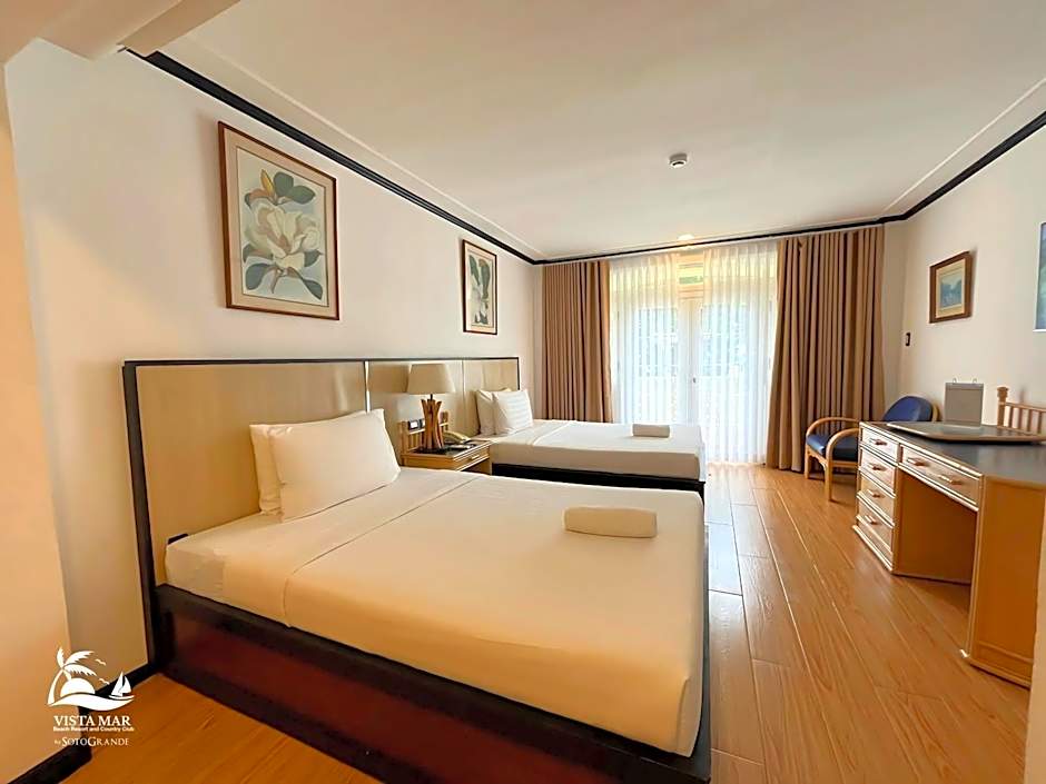 Rooms at Vista Mar Beach Resort and Country Club include options with sea views, 1 Queen bed, and 2 beds, accommodating 2 adults and 1 child. Smoking is not allowed in any of the rooms. Bed sizes vary from Queen to unspecified.