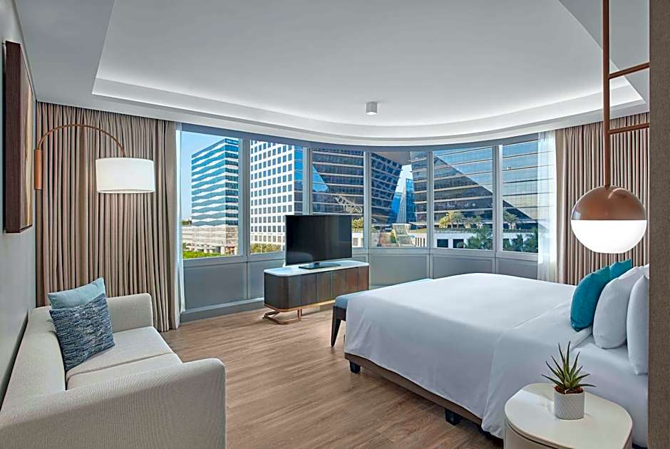 This spacious suite consists of 1 living room, 1 separate bedroom and 1 bathroom with a walk-in shower and free toiletries. The air-conditioned suite provides a flat-screen TV with cable channels, a mini-bar, a tea and coffee maker, a seating area as well as city views. The unit offers 1 bed.