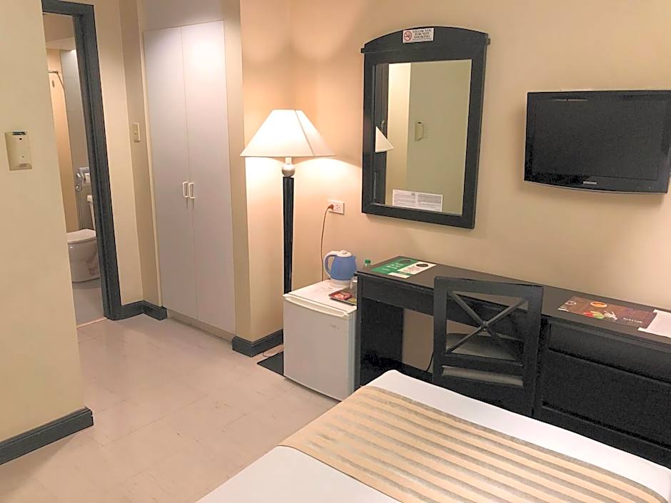 Excellent location - short walk to Greenbelt, Landmark and Glorietta. Friendly service, good value for money, simple but good breakfast that comes with the rate. Water refilling station - tap, cold and hot. They had fireworks at hotel rooftop at New Year's Eve. Hotel and linen are a bit old but clean. Would be awesome if a microwave will be available for guest to use or a self-service laundry same as business hotels in Japan.