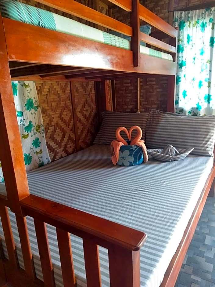 3 nights in a typical bungalow nipa hut. It's an experience to live in a traditional way (but with way more comfort than the locals have). The aircon in the bedroom is appreciated because the opened hut saloon is really hot in May ! We had a fridge, drinking water for free and a kettle with coffee. They changed our garbage bin (which was the first time in our stay in the Visayas). The plants look really nice in the garden. The sea is a 100 meters away from the residence... it's the locals and fishermen access to the sea, not a beach, but it looked beautiful. We rented a scooter for 350php directly to the landlady. I prefer this type of accommodation than big European resorts. The staff was really nice.
