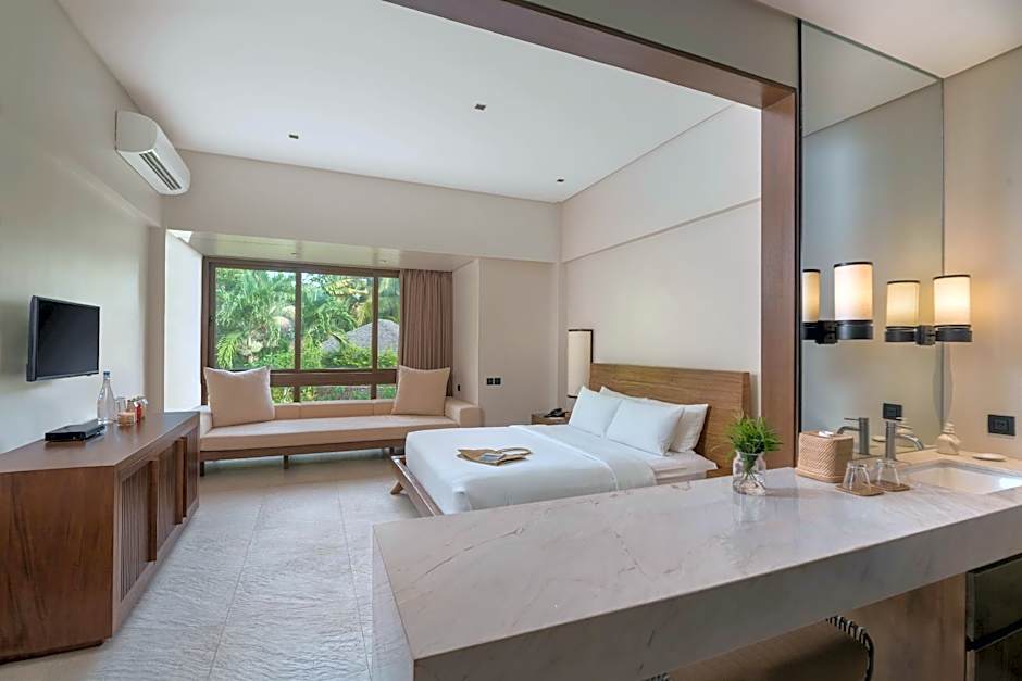 Fitted with a balcony offering garden views, rooms feature a flat-screen TV with cable channels, a personal safe and a wardrobe. Tea/coffee making facilities and a mini-bar are included. The private bathroom comes with hot and cold shower facilities and toiletries. Spacious 35 sqm room can either have 1 King bed or 2 double beds (subject to availability)