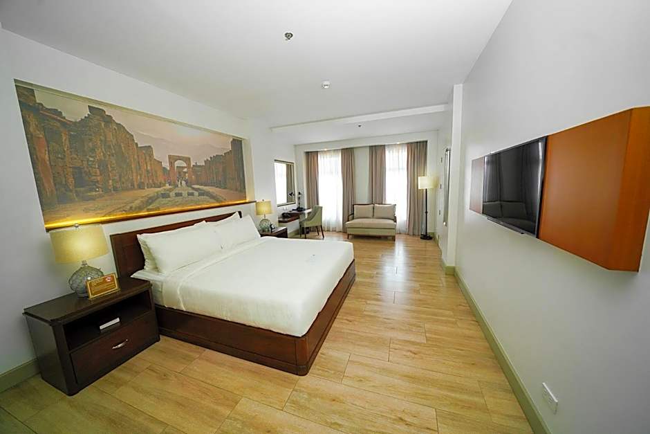 The Hotel Carlito Tagaytay offers various types of suites, including the Royal Suite, Deluxe Suite Twin, Junior Suite, and Junior Suite King. These suites range in size from 452 sqft to 915 sqft and can accommodate 2 adults and 1 child. Smoking is not allowed in any of these rooms. The beds in these suites are either King size or Double beds.