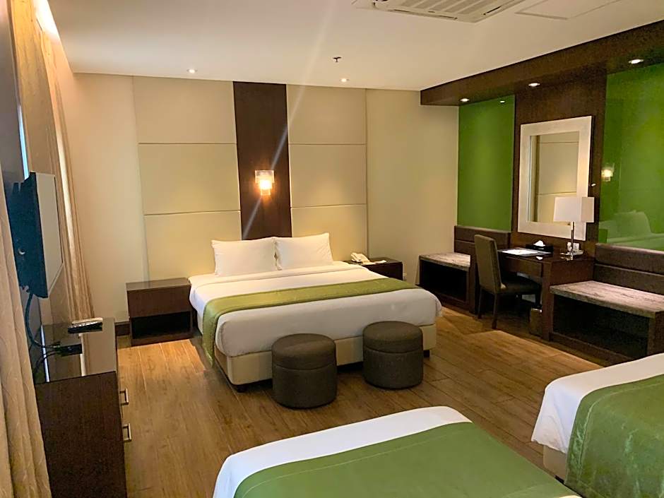 This room has a king and single beds, it is fitted with air conditioning, a flat-screen TV with cable channels, and a safety deposit box. An electric kettle and a tea/coffee maker is also included, while the private bathroom comes with a bidet and shower facility with free toiletries.