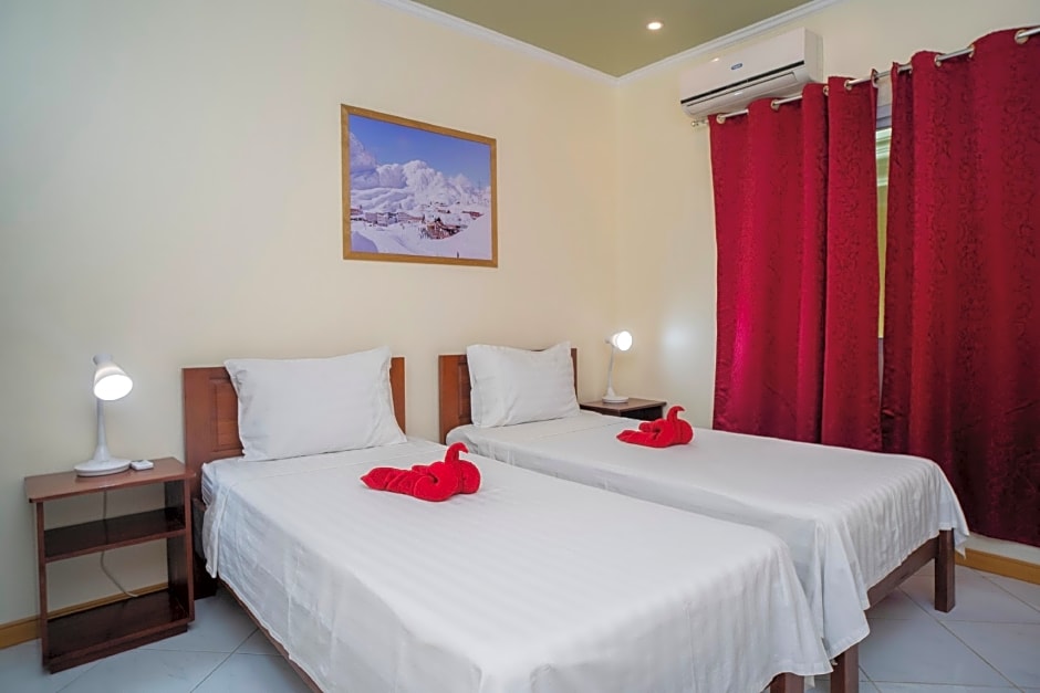 It was good to have coffee facilities, a fridge and a place to wash dishes. Thank you for providing bottles of water and for cleaning the rooms beautifully. All reception staff provided excellent service. For example they ordered tuk tuk transport and lent me an iron.