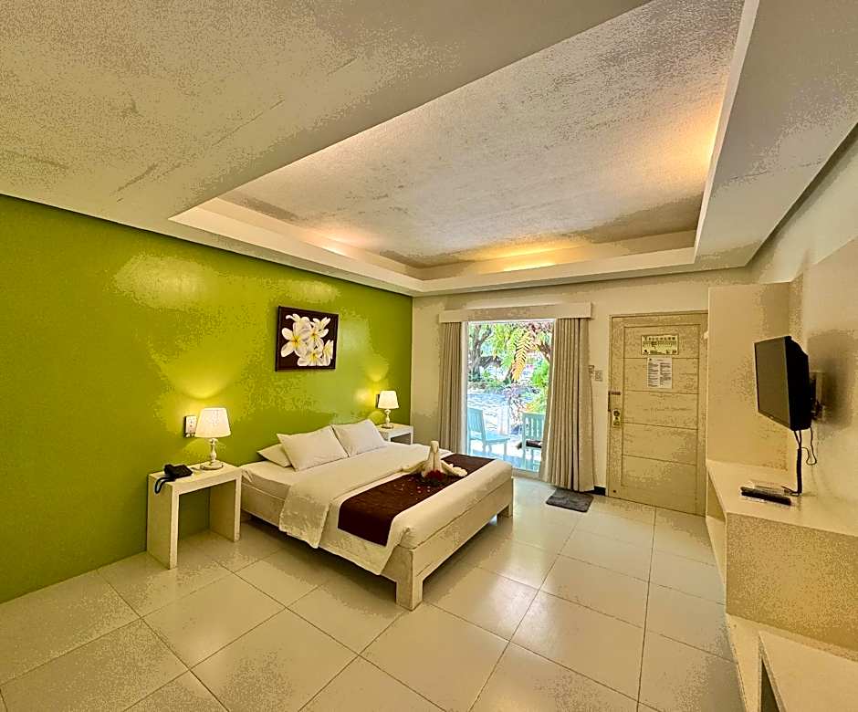 The rooms are located in beautiful greenery with a very quiet pool just next to the amazing beach of Boracay. The restorant and bar are working all day and night and are just the best in the entire beach line of Station 3. There was live music band, which was great. Looking at the sunset and listening to the band was a blessing.
