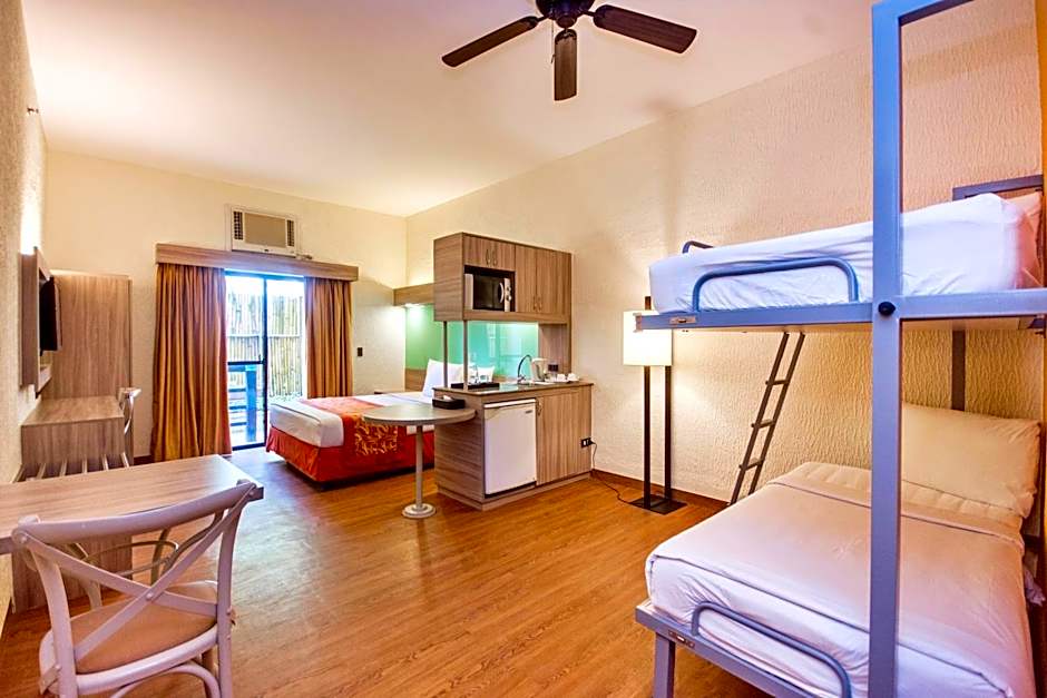 Spacious suite features hot shower facilities, sofa bed and kitchenette with a microwave and refrigerator.