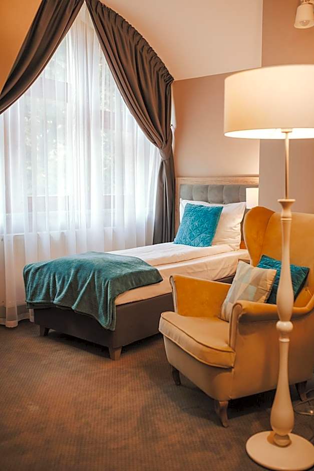 Hotel Dębowy Biowellness & SPA Góry Sowie offers various types of rooms. The Standard Single Room - Palace has a size of 129 sqft and accommodates 1 adult and 1 child. The Deluxe Double or Twin Room - Palace has a size of 215 sqft and accommodates 2 adults and 1 child. The Single Room - Residence has a size of 161 sqft and accommodates 1 adult. These rooms do not allow smoking and have different bed sizes.