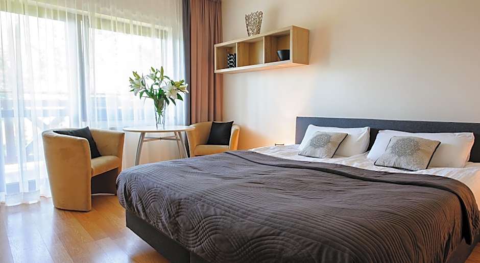 Quiet and beautiful place to visit . Great for biking and they have a bikes for rent. Spacious and very comfortable and clean apartments with huge bathrooms and big balcony with beautifulview. Delicious and tasty breakfast , wow . Great for family and friends vacation, few minutes from the city center but totally not in the city. Really worth to stay there. There is nice spa and coffee bar with the pub too. The best people are working there. So nice, helpful and awesome. Thank You ❤️❤️❤️ !!!