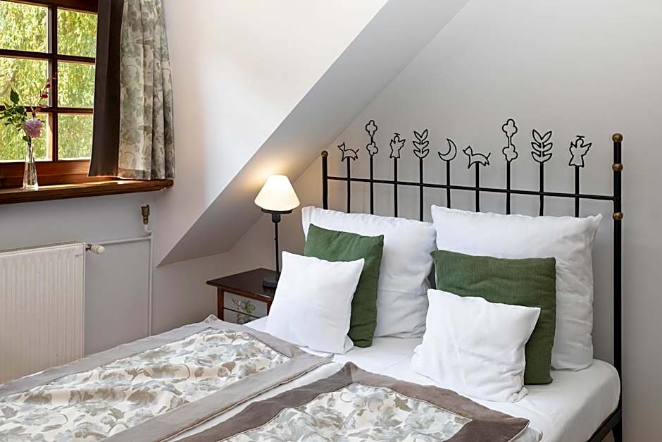 Nature, nature and lovely garden. Very good overall concept for people seeking a relaxed atmosphere. Almost a heritage.