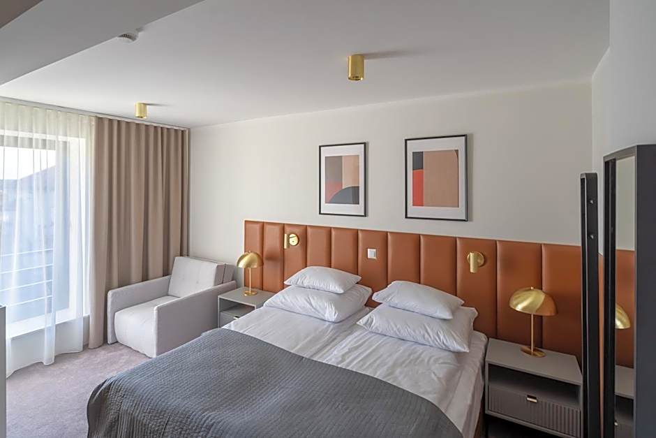 I recommend this hotel as it is really very warm, comfortable and modern. There is a nice terrace with sun loungers on the roof of the hotel. Excellent location next to the forest, quick access to the city, very good roads nearby. The owners are very nice, helpful and attentive to our needs.