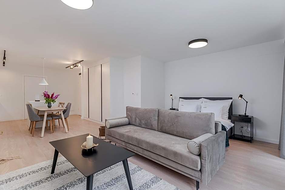 Location is perfect, close to the tram station, and you are not disturbed by noise. There is a view to trees, although not stunning. The superior studio is spacious and has all needed facilities. The garage is spacious and easy to enter and leave (gate opens by calling a phone nr). The flat is equipped for start(towels, toilet paper, tablets for a dishwasher ) Informatively, the room is not serviced, only upon request. Which is fine. The crew is polite.