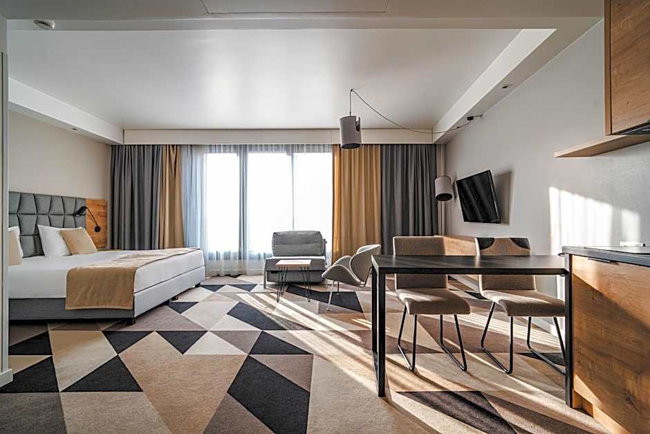 When it comes to dining, guests can enjoy a delicious meal at the on-site restaurant, Zielonym do góry. The restaurant has a family-friendly and modern ambience and offers a diverse menu featuring Mediterranean, Polish, local, and international cuisines.