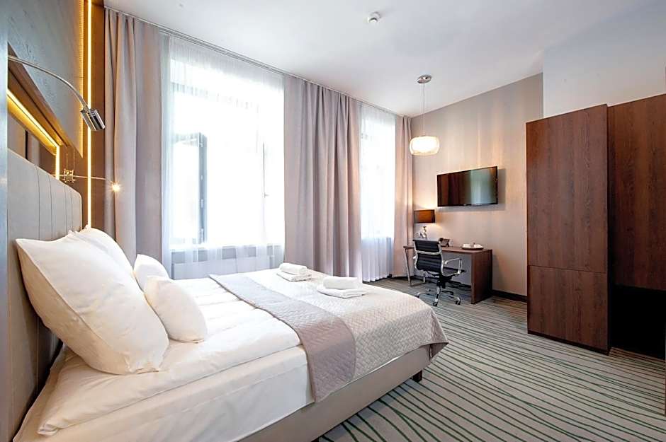 Guests at Plaza Boutique Hotel can enjoy a variety of leisure amenities during their stay. They can relax and unwind at the hotel's sauna, which provides a perfect opportunity for rejuvenation. The hotel also has a bar where guests can socialize and enjoy their favorite drinks. For those who like to stay active, there is a fitness center available onsite. Additionally, guests can explore the surroundings and enjoy outdoor activities such as bike tours and walking tours, as the hotel offers bicycle rental.
