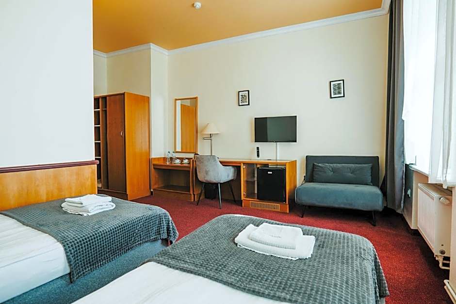 I'm very happy that I have chosen hotel Polonia because the staff was very kindly and it was possible to check in 2 hours earlier. I was so tired after my long trip and I was afraid I have to wait 2 hours till my check-in time but the room was ready. I liked the location - a view to old train, shops were nearby, a short walk to the historical central place. The entrance from parking side gave me a privacy feeling. The room was spacy. I had everything what I needed.