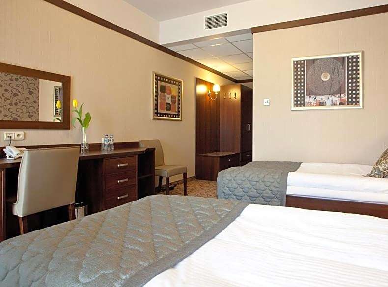 Hotel-Restauracja Platan offers Quadruple Rooms that can accommodate 4 adults with 4 twin beds and a room size of 323 sqft, and smoking is not allowed. They also have Double or Twin Rooms that can accommodate 2 adults and 1 child, featuring 2 twin beds and 1 double bed with a room size of 161 sqft, and smoking is not allowed.