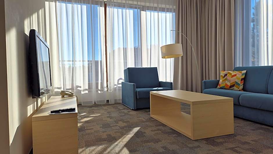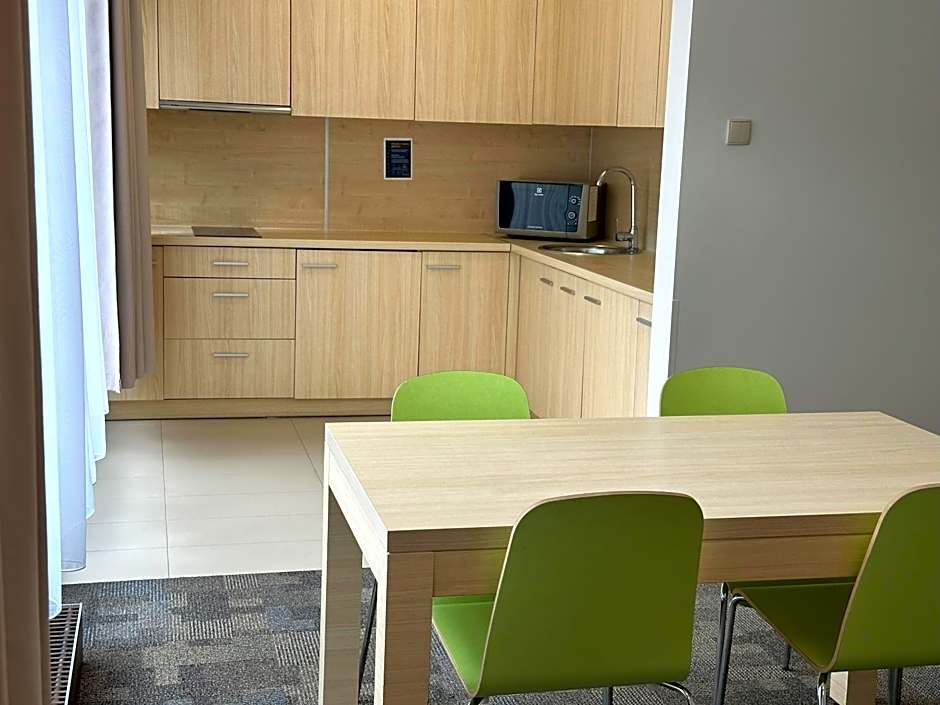 The Golden Tulip Międzyzdroje Residence offers two types of rooms: Studios and Suites. Both room types have a size of either 452 sqft or 646 sqft. Smoking is not allowed in either room type. The Studios can accommodate 4 adults and have 2 twin beds, 1 sofa bed, and 1 double bed. The Suites also accommodate 4 adults and have 2 twin beds and 1 sofa bed.