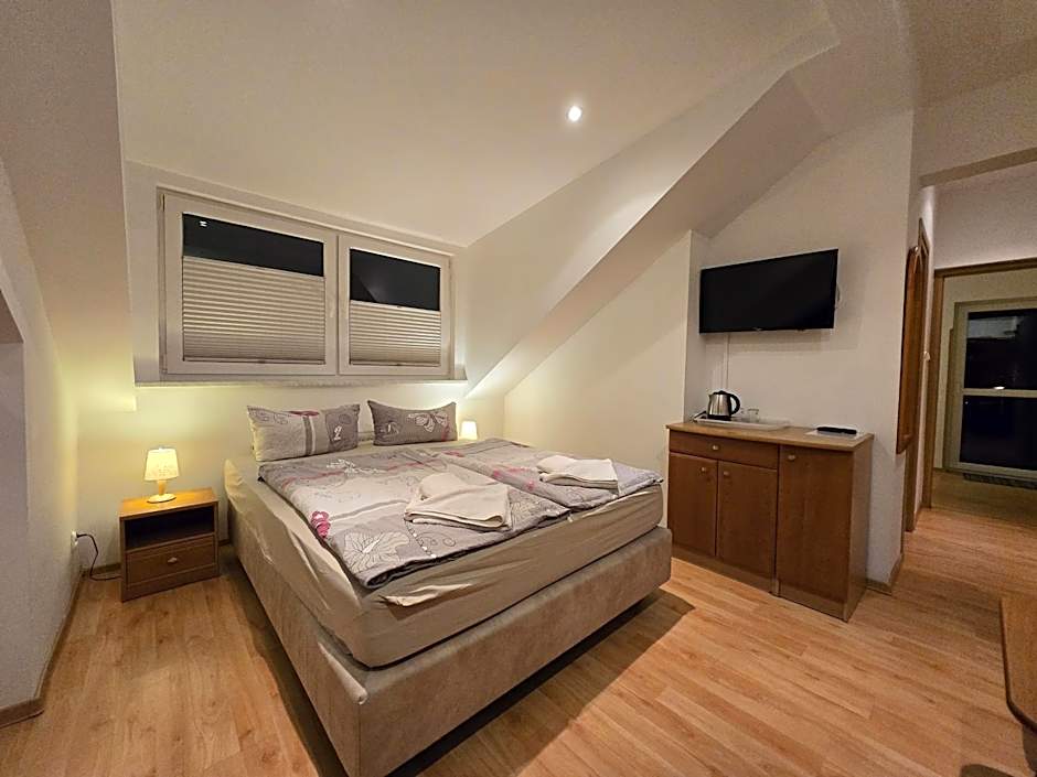The twin/double room provides heating, as well as a private bathroom boasting a shower. The well-equipped kitchenette has a stovetop, a refrigerator, a dishwasher and kitchenware. The twin/double room features a tea and coffee maker, a wardrobe, parquet floors, a flat-screen TV, as well as garden views. The unit has 2 beds.