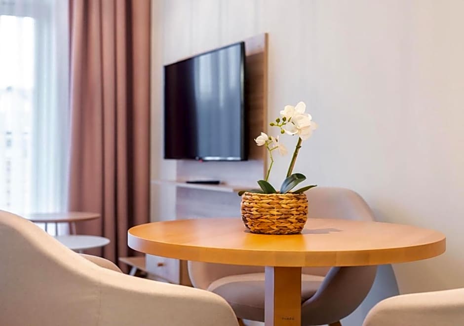 This apartment consists of 1 living room, 1 separate bedroom and 1 bathroom with a walk-in shower and free toiletries. The apartment's kitchenette, which features a refrigerator, is available for cooking and storing food. The air-conditioned apartment provides a flat-screen TV, a tea and coffee maker, a seating area, a dining area as well as city views. The unit offers 2 beds.
