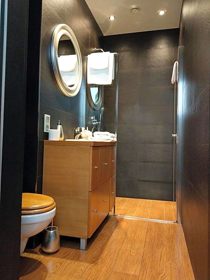 A spacious apartment with a large shower cabin. Superior type apartments feature a separate bedroom and a living room with a sofa and armchairs.