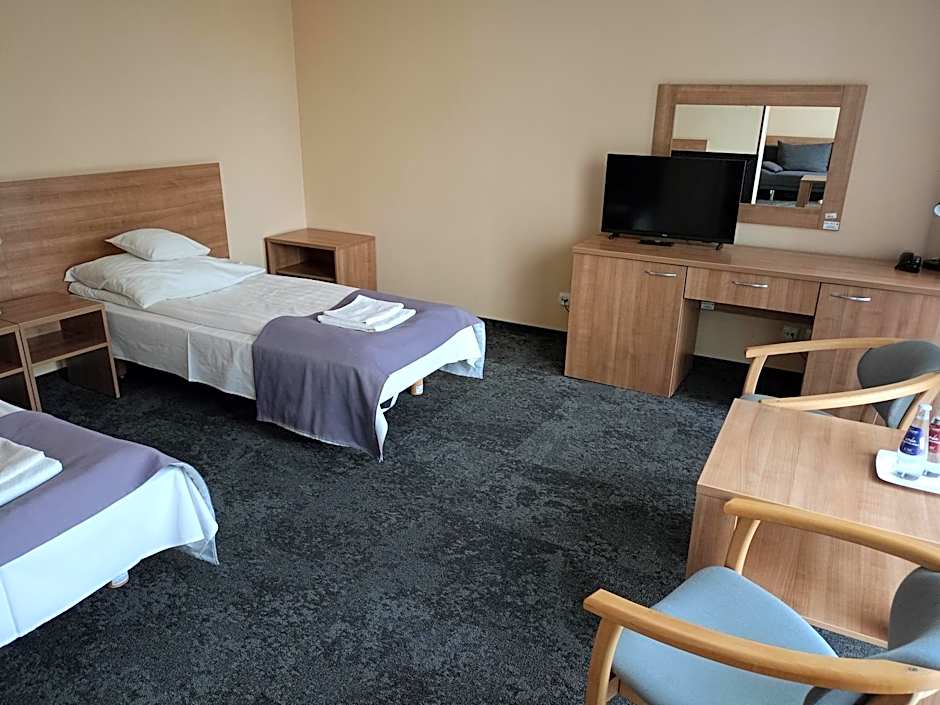 Amazing spacious and clean double room. Free water bottle in the room. Extra - swimming pool nearby hotel is free of charge! Big parking. Opposite to Biedronka.