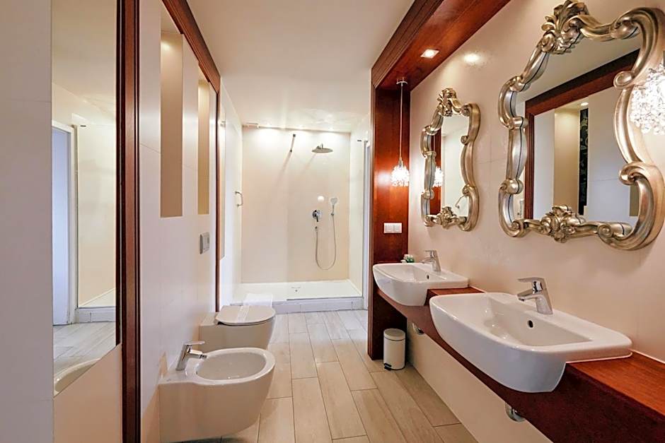 A spacious, air-conditioned room with a flat-screen TV with satellite channels and a mini-bar. It features a bathroom with a shower.