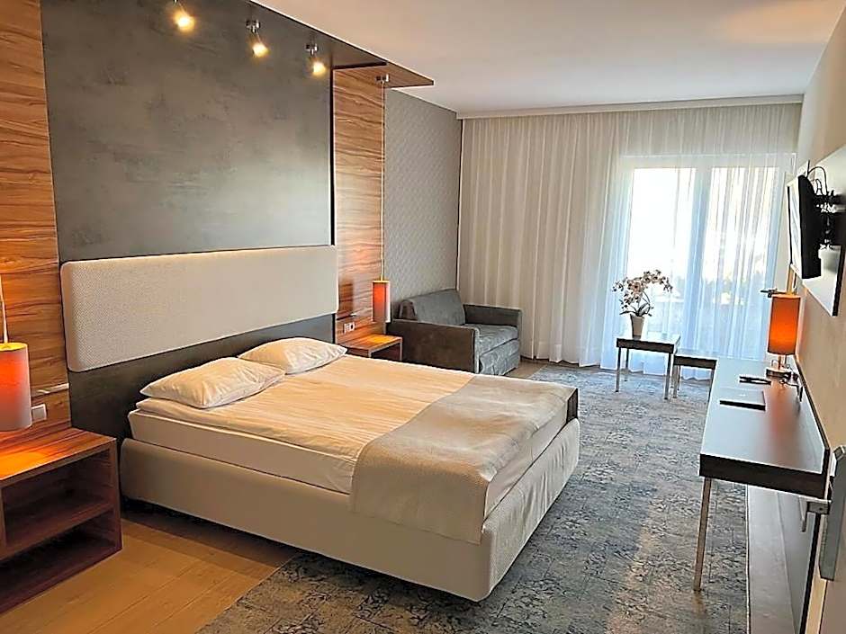 Rooms were very big and spacious. Hotel is very modern and clean. Outside was lovely to sit and have a drink by the water. Trampoline and outdoor toys for children kept our little one happy.