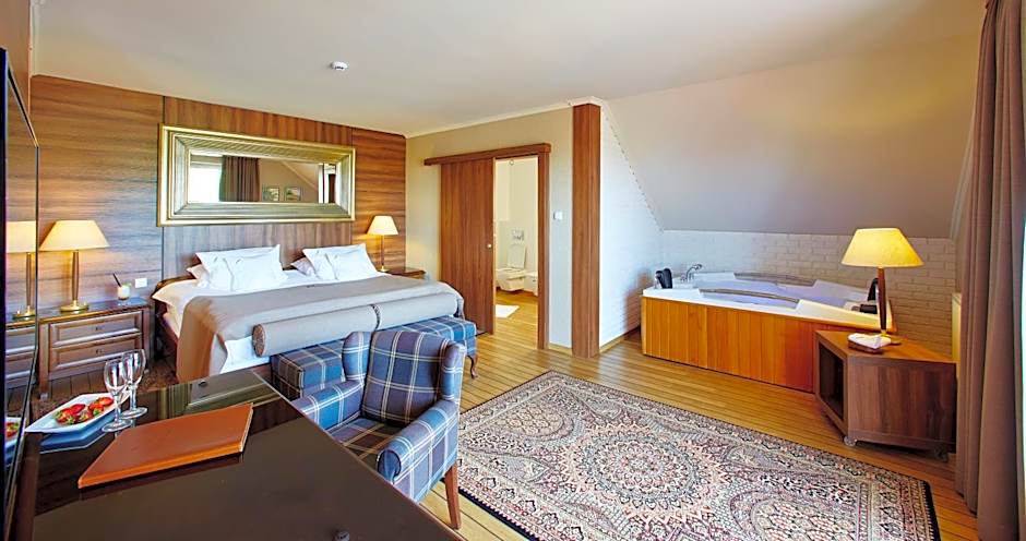 This suite features a large terrace with a view of the Słowiński National Park. It is luxuriously designed combining elegance and practicality. It includes a spa bath.