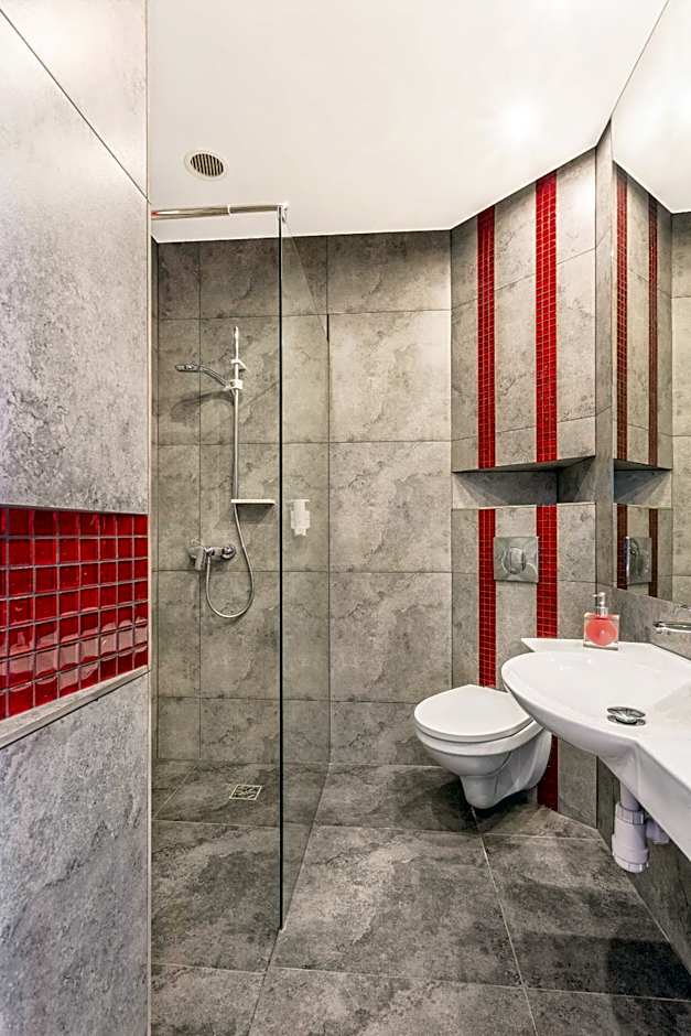 The only really annoying thing - glass doors of the toilet/shower room, no privacy... It needs to be fixed at some point;)