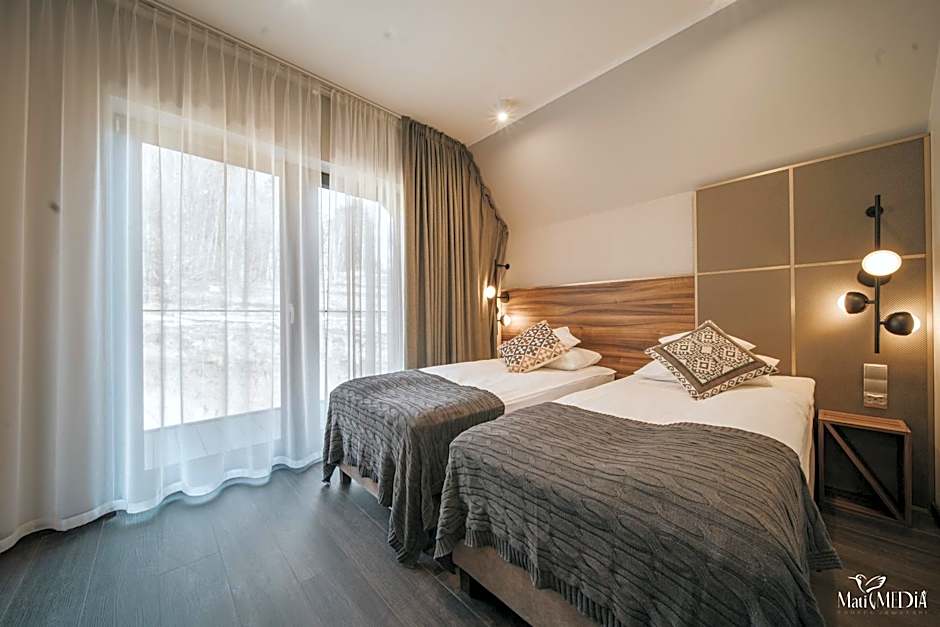 The apartment has a nice location. There is a possibility to use a swimming pool and sauna from the hotel. We had a breakfast option, and we did not regret it. Really worth it!