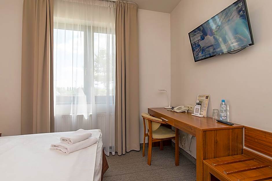 The hotel is modern and the room had all the comforts one can think of - air conditioning, an alarm clock, toiletries in the bathroom. Bed was very comfortable. Spoiled for choice at breakfast. At this price, one gets unbelievable value. Excellent as a sleepover base for nearby Ksiaz castle.