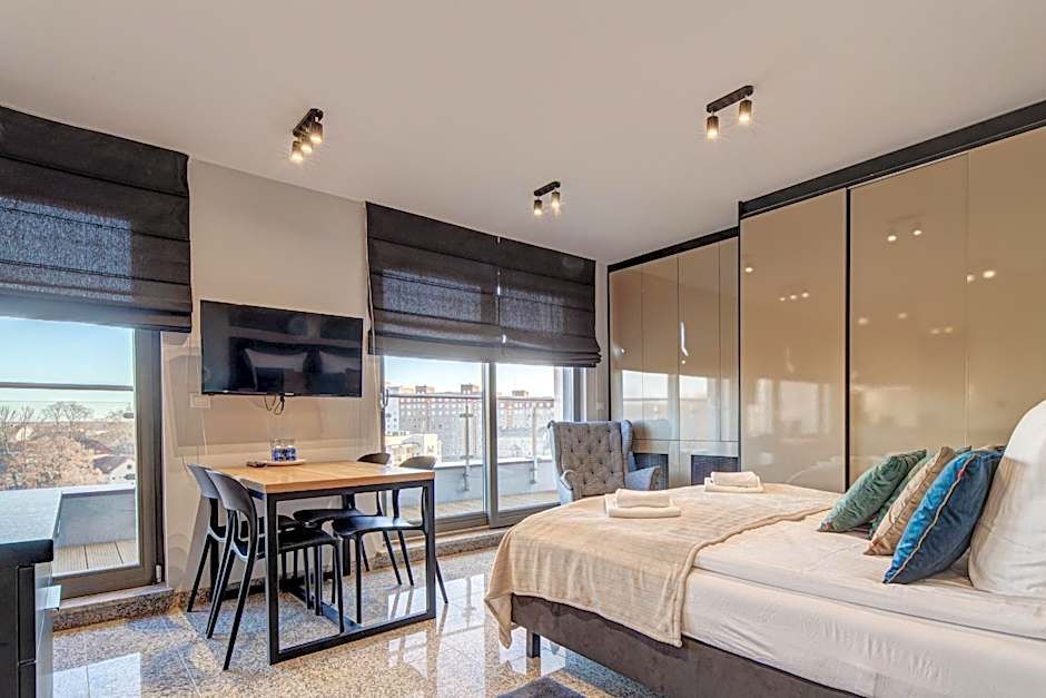 At Apartamenty Rondo, the hotel offers a variety of room types including Standard Apartments, Superior Apartments, Economy Double Rooms, Small Penthouse, Deluxe Apartments, and Standard Apartments in the Rondo Apartamenty complex. The rooms range in size from 226 sqft to 1507 sqft and can accommodate from 2 to 8 adults, with the option of including children. Smoking is not allowed in any of the rooms. The rooms are furnished with different bed sizes including double beds, queen-size beds, and sofa beds.