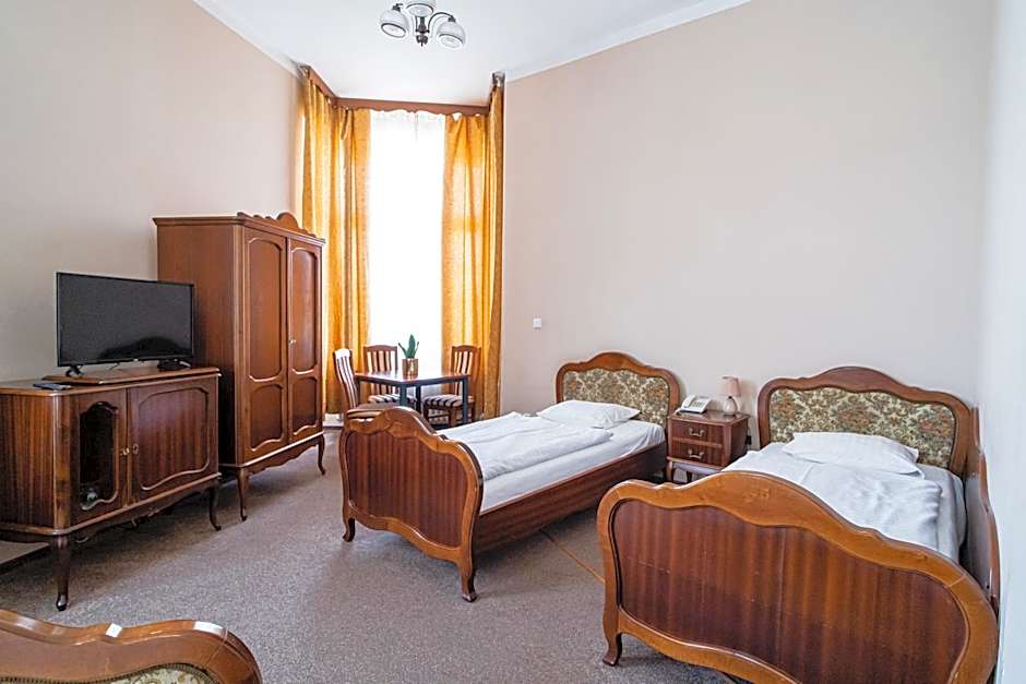 Spacious, high ceiling and bright room, clean and quiet, even it was located on the street side in front of the theater. Hotel location is at the border of the old town at a walking distance of everything. We traveled by train. You need to take a taxi to the hotel. Taxis are very affordable in the whole country.