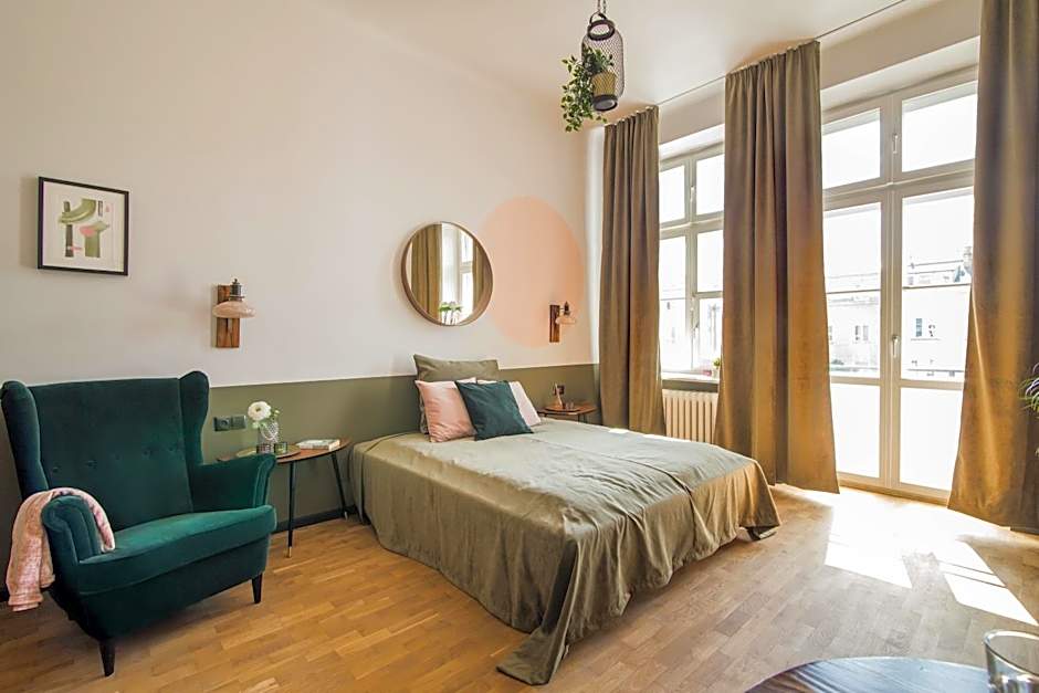 Very convenient location. Center, old town, transport interchange (from the railway station we took tram 7 to the "National Museum" stop, it's about 15 minutes and then 5 minutes on foot to the apartments). Everything is within walking distance, entertainment, sights, shops. Clear instructions for check-in, comfortable bed, balcony, apartments overlook the street of bars and it's always very noisy there at night. We were ready for this, for us it wasn't a minus, but for those who have a bad sleep, this should be taken into account immediately. There is no elevator in the building, this should also be taken into account, suitcases are difficult to lift. The team was very helpful, and with the morning check-in, they printed out the necessary documents for us at our request, they answered all questions very quickly.