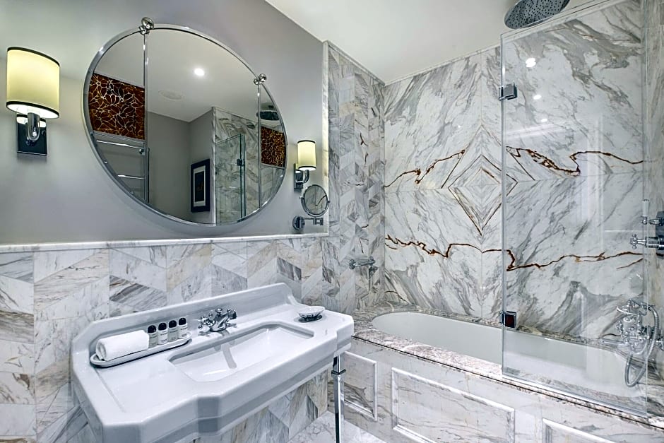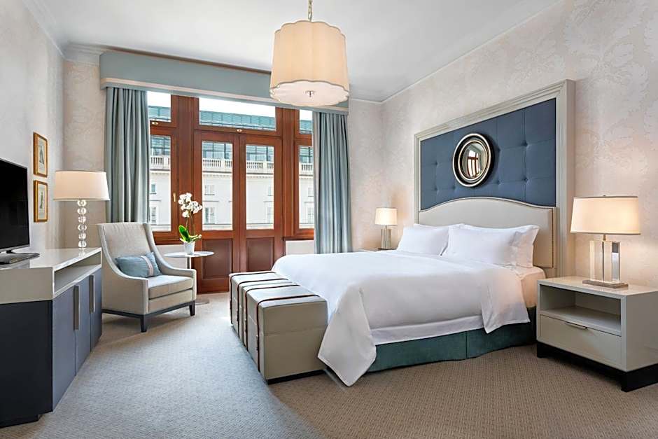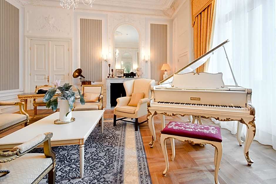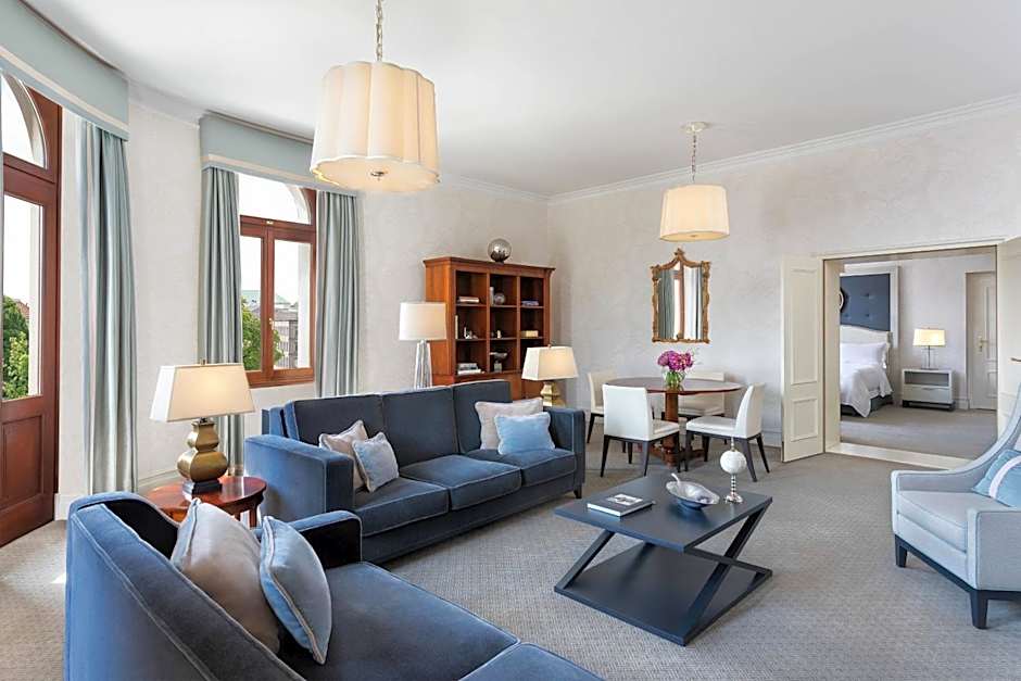 A unique two-bedroom corner suite consisting of two separate bedrooms, an elegant living room with dining and seating area, two marble bathrooms and an additional guest toilet. Other highlights of the suite include views over Krakowskie Przedmieście and a green park, and exclusive benefits like welcome amenity and complimentary mini bar upon arrival, complimentary Mercedes Limousine transportation to and from Warsaw Chopin Airport. Unlimited spa access includes a swimming pool, steam bath and gym.